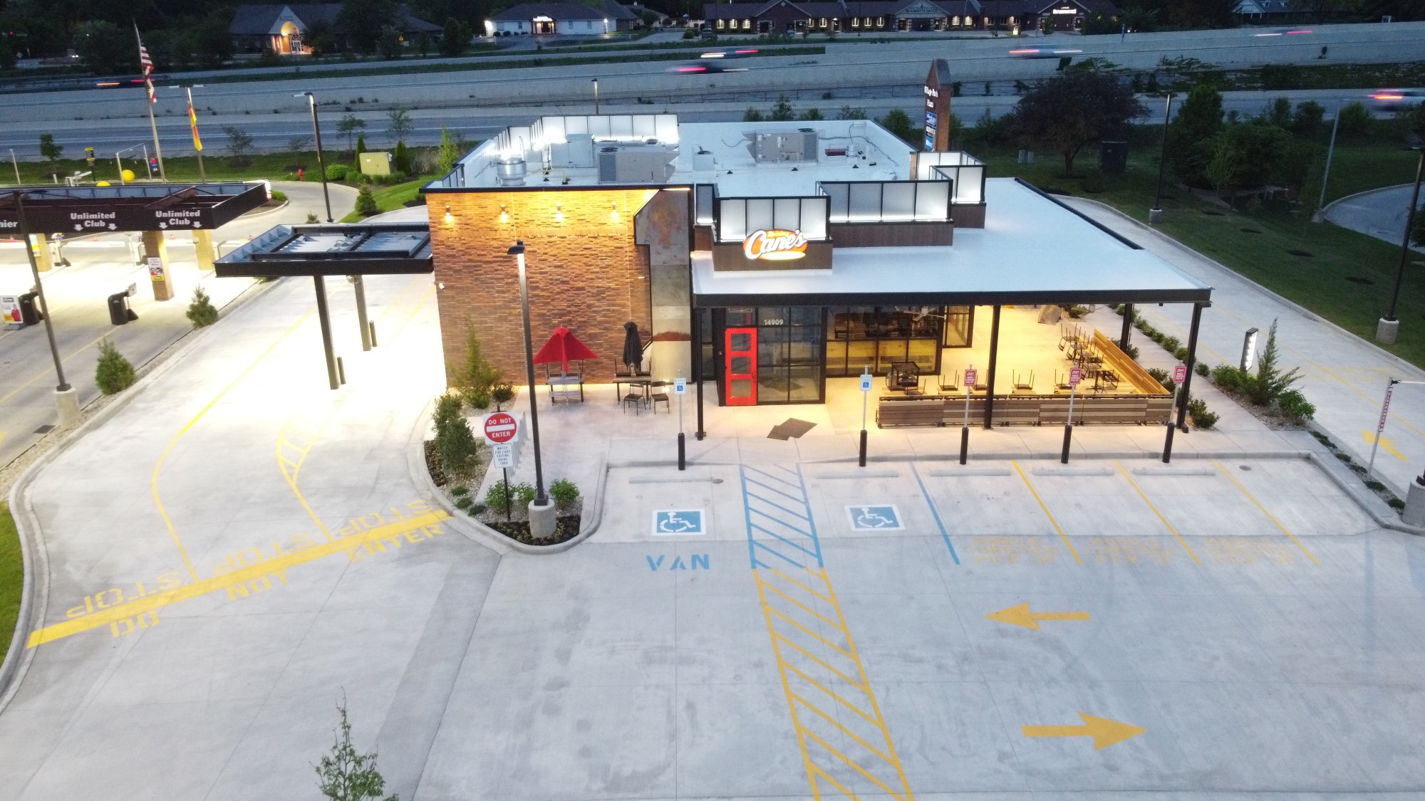 These are aerial images from a Raising Cane’s in Indiana that was done by Stamper Concrete Service, Inc.